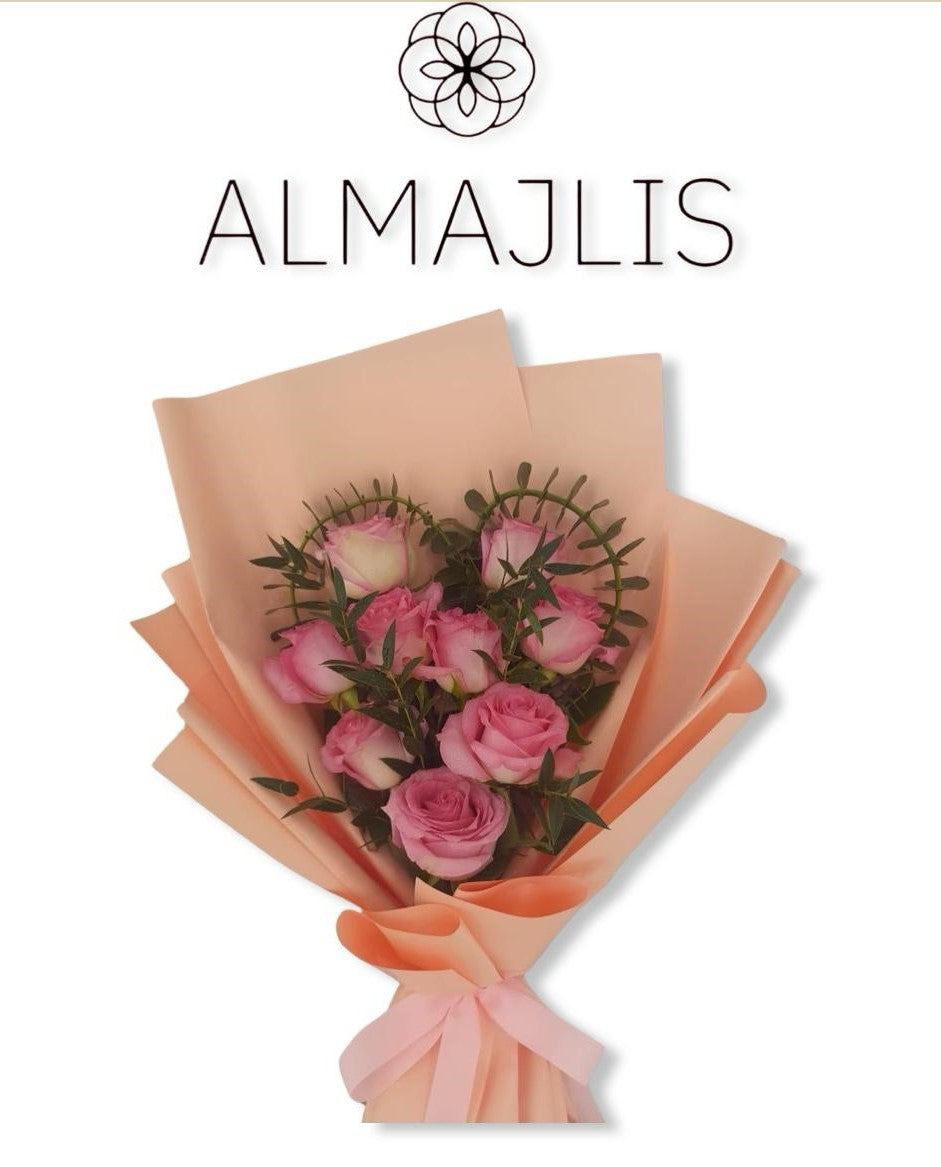 The exclusive bouquet includes nine beautiful pink roses in addition to eucalyptus flowers to add a touch of nature and beauty. This set is wrapped in light orange paper which enhances its beauty and highlights its colors in a distinctive way.