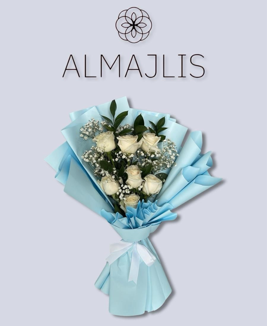The bouquet contains eight beautiful orange roses with a touch of lemon to add a touch of freshness and brightness. The roses are characterized by their bright colors and fragrant scent, making them the perfect gift for any special occasion.