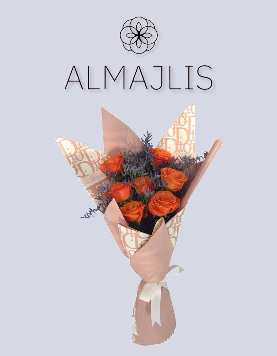 The bouquet contains eight beautiful orange roses with a touch of lemon to add a touch of freshness and brightness. The roses are characterized by their bright colors and fragrant scent, making them the perfect gift for any special occasion.