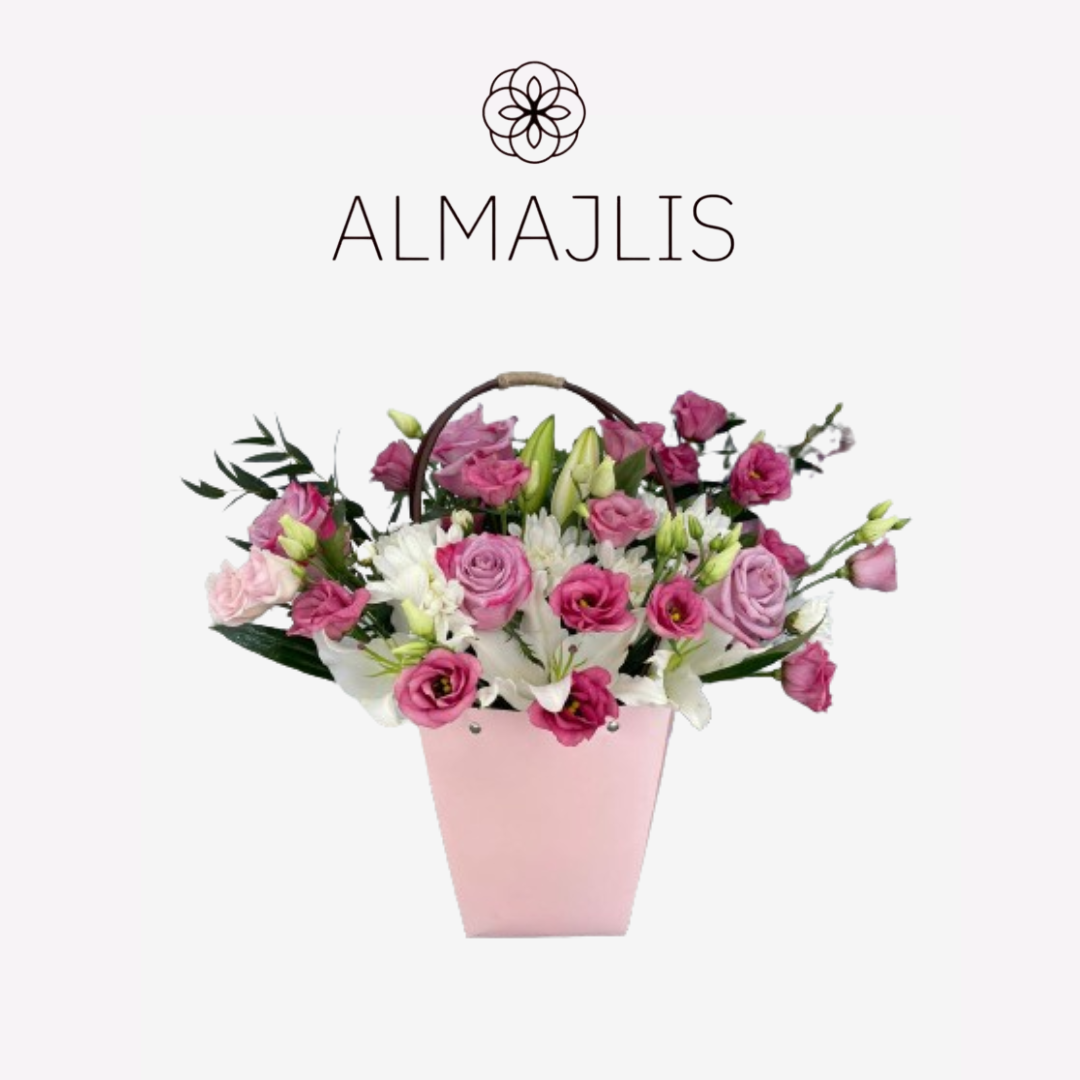 The bouquet consists of two luxurious lily roses with bright colors and attractive scent, decorated with five charming parchment roses that add a touch of luxury and elegance. The bouquet also contains three pieces of eustoma roses to add a touch of softness and vitality. The set is completed with a variety of kisentima roses that add a touch of originality and distinctive beauty.