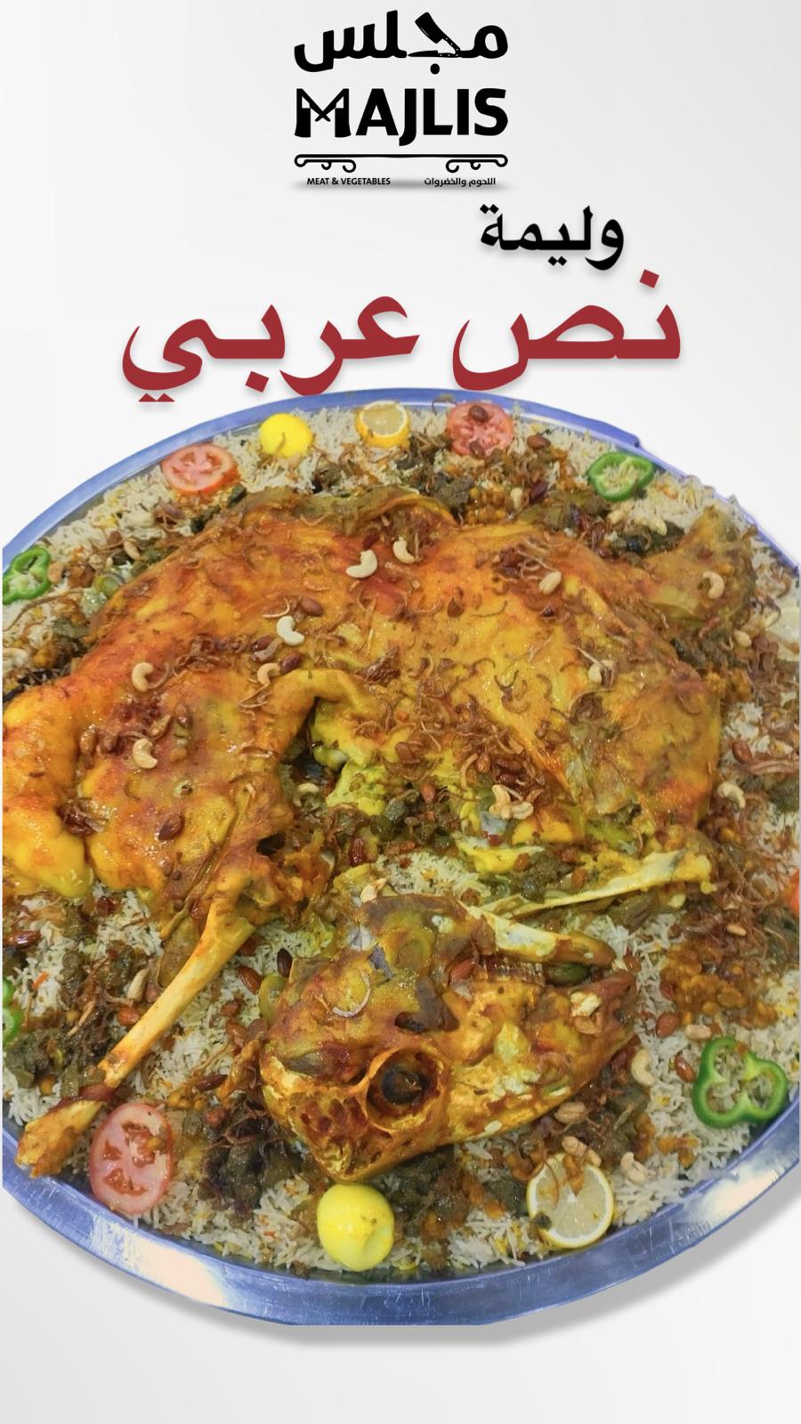 🌟 "نصف ذبيحة محلية مع الرأس ونوعها عربي بوزن 7 الى 8 كجم وعمر الخروف 4-5 أشهر، لحم طري شهي ومثالي لضيافة عائلية تصل إلى 5 الى 7 أشخاص يُقدم مع المجبوس الخليجي أو البرياني."